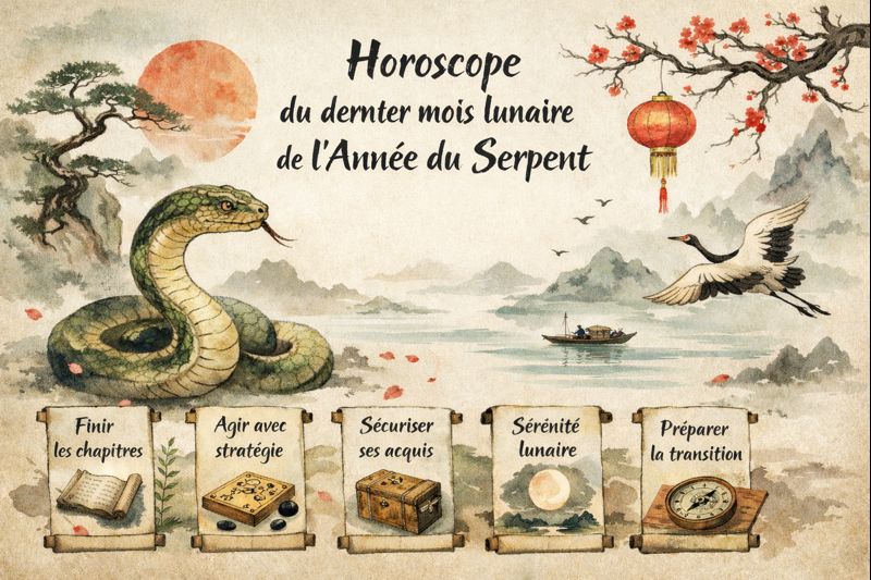 Horoscope chinois du dernier mois lunaire : tendances, conseils et énergies pour bien terminer l’année du Serpent.