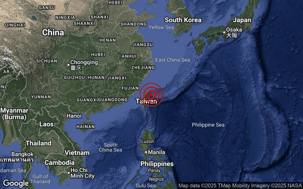 Bilan séisme à Taïwan : épicentre au large de Yilan, profondeur 72,8 km. Répliques possibles, vigilance recommandée.