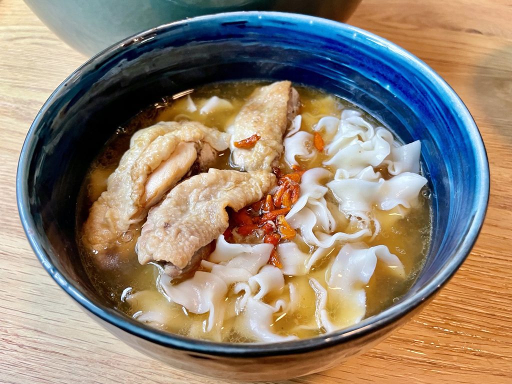 Recette traditionnelle taïwanaise du Ma You Ji, une soupe réconfortante au poulet et au sésame noir, facile à réaliser.