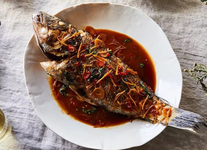 Découvrez une recette taïwanaise de poisson entier au basilic, piments, gingembre et sauce soja, parfaite pour 4 personnes.