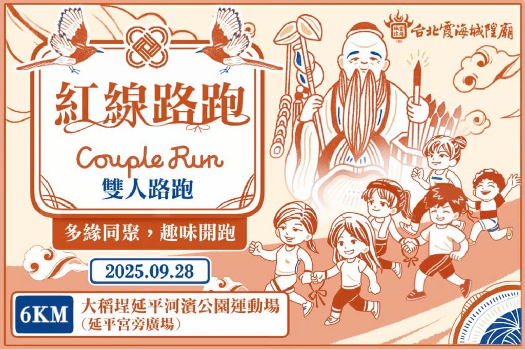 Participez à la Couple Run de Taipei : une course ludique en duo (couple, amie, famille), bénie par le dieu de l’amour Yue Lao.