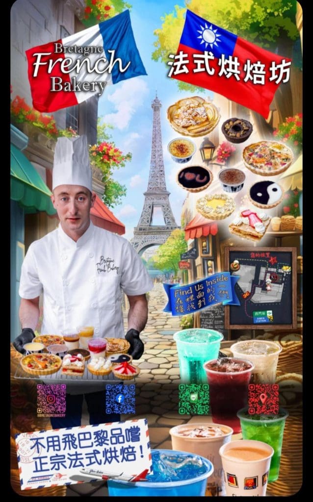 Bretagne french bakery a été créé en 2017 a Gongguan avec l’unique bar a sirop (Monin) 68 saveurs disponibles, les bouteilles également disponibles a la vente a un prix défiant toute concurrence même shopee, le but de la bakery est de donné l’opportunité à un maximum de personnes de pouvoir goûté de vrai pâtisserie faites à la main de A à Z à un prix très accessible !