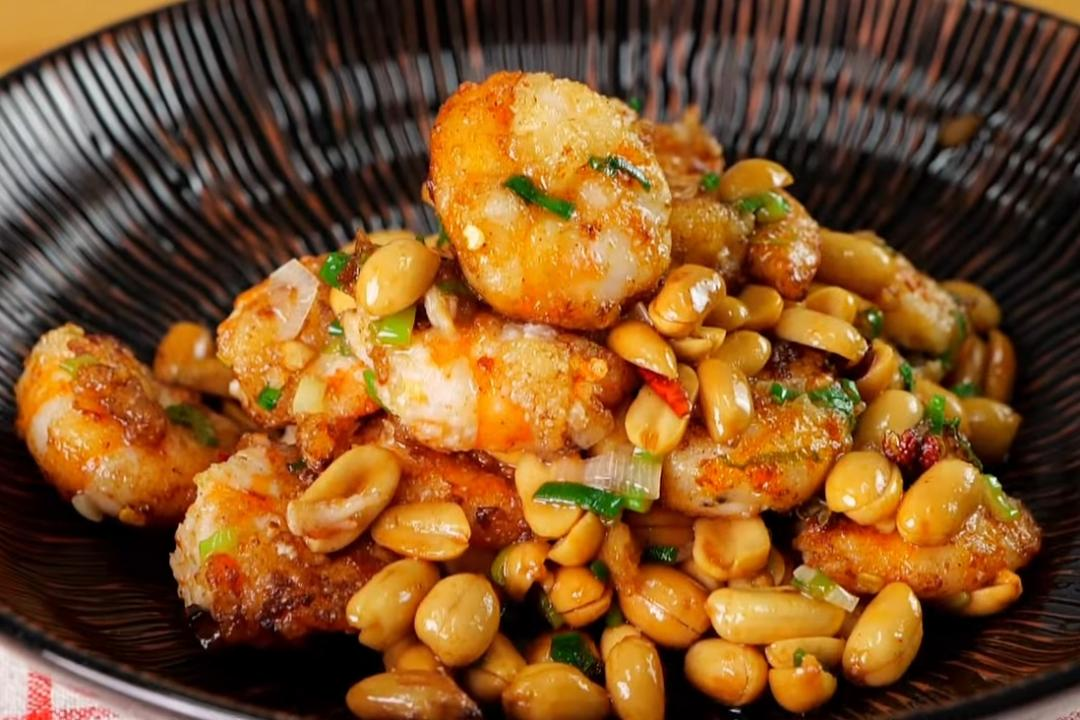 Crevettes croustillantes au sel et aux cacahuètes épicées