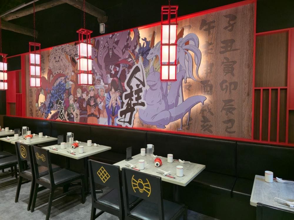 Fermée à Hsinchu en 2023, l’enseigne revient avec un concept immersif, inspiré du village caché de Konoha. Les décors reproduisent fidèlement l’ambiance de l’anime, avec comptoir, vaisselle thématique et animations interactives comme les missions de ninja ou les défis de “mission card”.