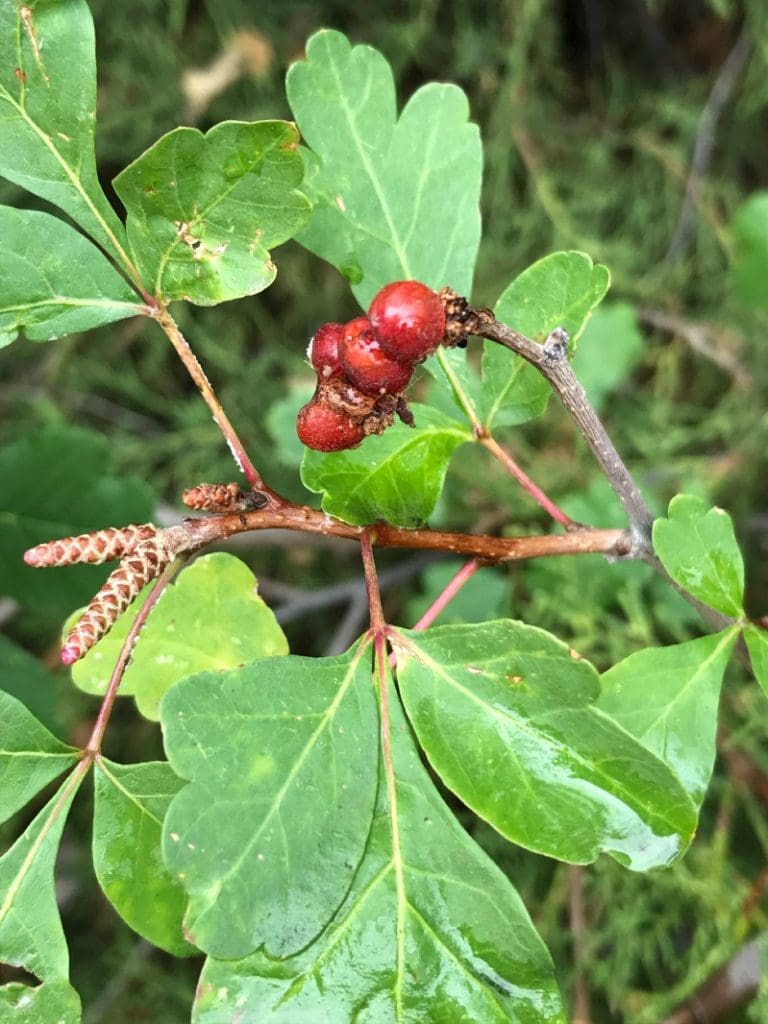 Une de nos épices sauvages s’appelle le sel de montagne. Nous le récoltons à partir des graines du sumac (Rhus chinensis). Cet arbre est cultivé partout dans le monde (donc vous pourrez facilement faire cette épice). Dès que les graines deviennent dorées, vous pouvez trouver de petits cristaux de sel sur les graines. À ce moment, vous pouvez récolter une petite branche et la suspendre chez vous pour la faire sécher. Si les graines sont encore collantes, elles doivent sécher plus longtemps. Une fois les graines sèches, vous pouvez les écraser dans un mortier et avec un pilon. Nous utilisons le sel de montagne sur des viandes comme le porc, le poulet et le poisson, ainsi que lors de la fabrication de nos cornichons.