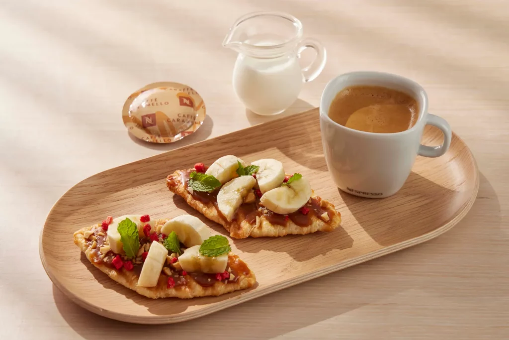 - 🥐 Croissant plat à la crème café caramel : Un clin d’œil aux tendances coréennes, avec une crème pâtissière infusée à la capsule Caffè Caramello.
