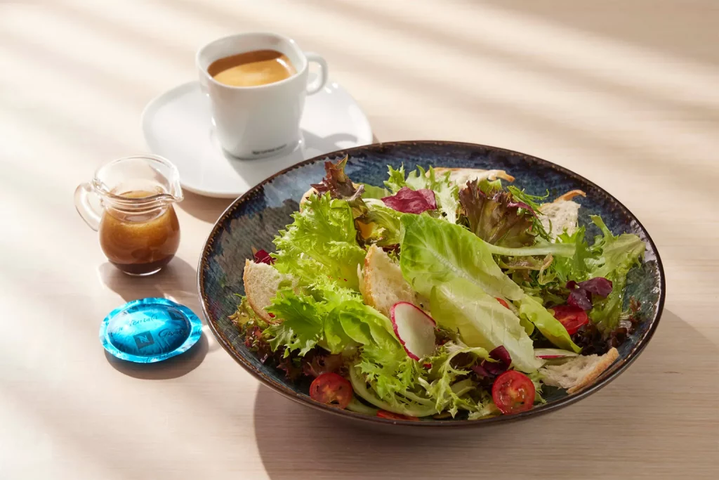- 🥗 Salade au café du Guatemala : Une vinaigrette originale mêlant grains arabica et robusta, associée à des noix, du vinaigre de Xérès et de l’huile de pépins de raisin.