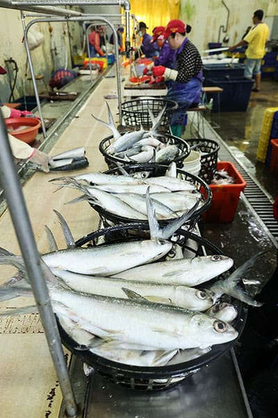 A l’usine de transformation de poissons, Sea Ground Enterprise Company, vous pourrez découvrir comment le poisson est traité. Et notamment les étapes du processus : d’abord, les écailles sont retirées mécaniquement, puis les têtes sont coupées, la chair du ventre enlevée, et enfin, les poissons sont éviscérés et filetés. Chaque ouvrier, muni d’un petit couteau, occupe un poste spécifique où il peut rapidement découper et parer un steak de poitrine en moins de trente secondes.