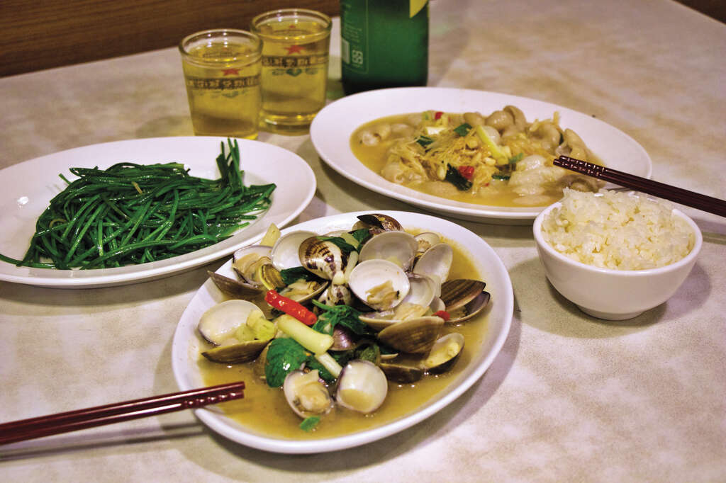 Dans le nord, les restaurants de fruits de mer jouent un rôle décisif. Keelung alimente Taipei ; les poissons et coquillages arrivent, parfois vivants, et l’on cuisine au gré des pêches. À mesure que la clientèle se diversifie, ces établissements élargissent leur carte : riz frits, légumes sautés, viandes, plats froids, soupes. Le rechao naît quand cette logique de « ce qu’on a, on le cuit maintenant » devient un modèle stable, avec des tables courtes, du service rapide et des prix lisibles.