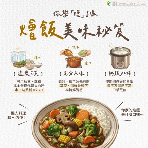 Le riz nappé (燴飯), sorte de curry taïwanais, est un pilier de la cuisine domestique taïwanaise. Il associe du riz blanc chaud (白飯) à une garniture liée par une sauce brillante et fluide. L’Administration de l’agriculture et de l’alimentation (農糧署), via sa page « Savourez le frais – Nong YA (鮮享農YA) », rappelle que la réussite tient à trois paramètres techniques : la liaison, l’ordre de cuisson et la température du riz. L’objectif est clair : garantir une texture homogène, préserver la valeur nutritionnelle et optimiser l’intégration des produits agricoles locaux. Le riz nappé permet d’assembler céréales, légumes et protéines dans un seul plat, sans excès de sel ni de matières grasses. La méthode prévaut sur l’abondance. Une sauce trop dense étouffe le grain ; une cuisson mal séquencée altère croquant et fraîcheur ; un riz refroidi casse l’harmonie. Maîtriser ces points assure un dîner rapide, complet et cohérent.