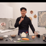 Faites griller les aubergines jusqu’à ce que la peau soit noire. Retirez la peau et mélangez la chair avec la sauce soja et l’ail.