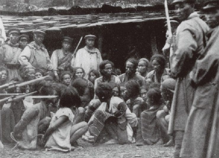 Cependant, une approche différente est utilisée pour contrôler les peuples autochtones de Taiwan. Les peuples autochtones de l’île de Formose sont toujours désignés comme seiban (生 蕃, «barbares bruts» ou «tribus sauvages»). Et traités comme des sauvages plutôt que comme des sujets égaux en droits. Les tribus sont «apprivoisées» par l’assimilation, le processus de désarmement des tribus de chasseurs traditionnels. Les japonais les forcent à déménager dans les plaines et à mener une existence agraire. Les résistances qui suivirent ont été réglées par des campagnes militaires et par l’isolement et/ou l’enfermement dans des zones réservées.