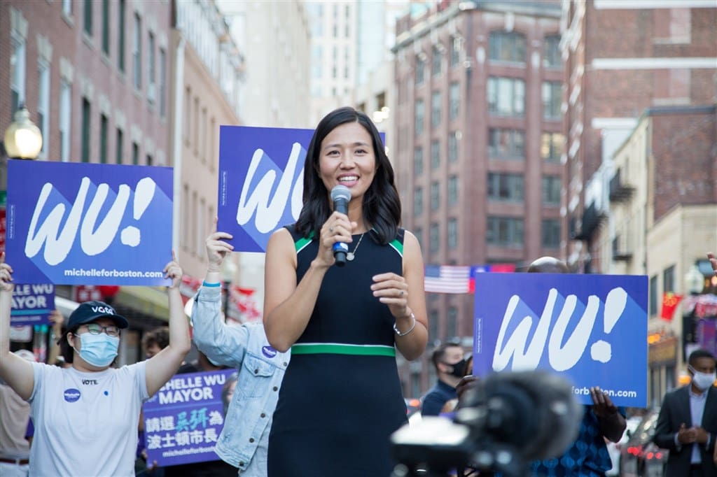 Après des stages à la mairie de Boston et une expérience professionnelle comme consultante, Michelle Wu est élue en 2013 au Conseil municipal. Elle y milite pour la réforme des licences commerciales, le congé parental, la justice environnementale et les transports gratuits. Elle devient présidente du Conseil de 2016 à 2018. En 2021, elle remporte haut la main l’élection municipale et prend ses fonctions comme 55e maire de Boston. Elle est soutenue par de nombreuses figures démocrates, dont Elizabeth Warren.