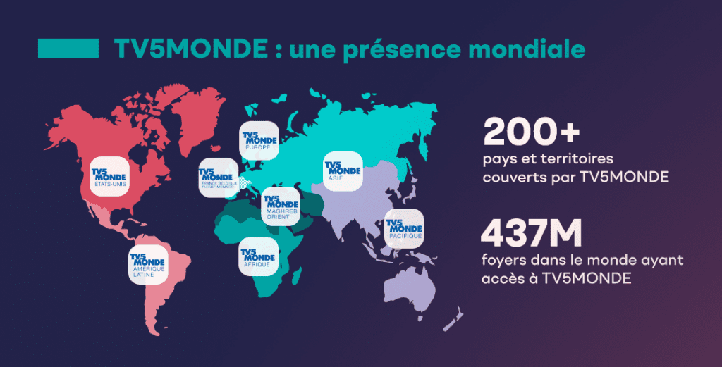 En complément des chaînes régionales et deux chaînes thématiques (consacré à la jeunesse et à l’Art de Vivre), TV5MONDE propose une plateforme gratuite, mondiale et généraliste de vidéo à la demande en français et sous-titrées en 5 langues : TV5MONDEplus. Cette offre AVOD (financée par la publicité) est disponible sur tous les écrans à tout moment permettant ainsi de regarder des programmes en français quand vous souhaitez.