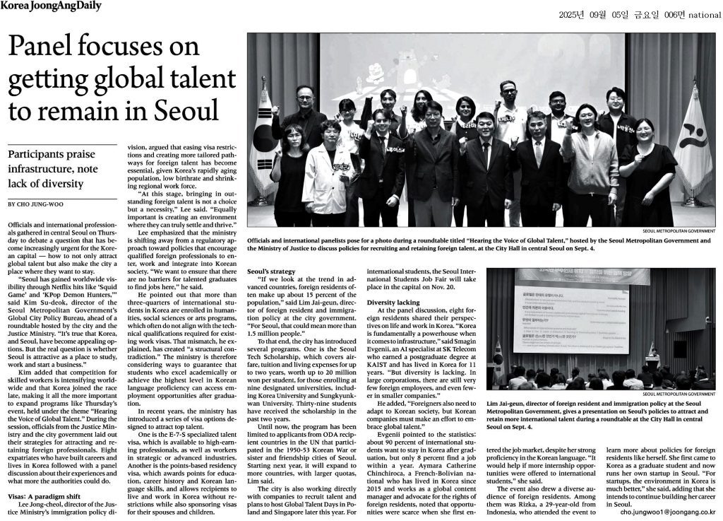 La suite s’est faite assez naturellement. Pendant mes études à Séoul, j’ai été sélectionnée pour rejoindre le Conseil des résidents étrangers de la ville. Pour la première fois, je pouvais participer à des réflexions concrètes sur les politiques publiques et la place des étrangers dans la société coréenne. Ensuite, il y a eu un stage à la mairie de Séoul, des engagements associatifs, du bénévolat dans le domaine de l’immigration… et surtout des rencontres déterminantes.