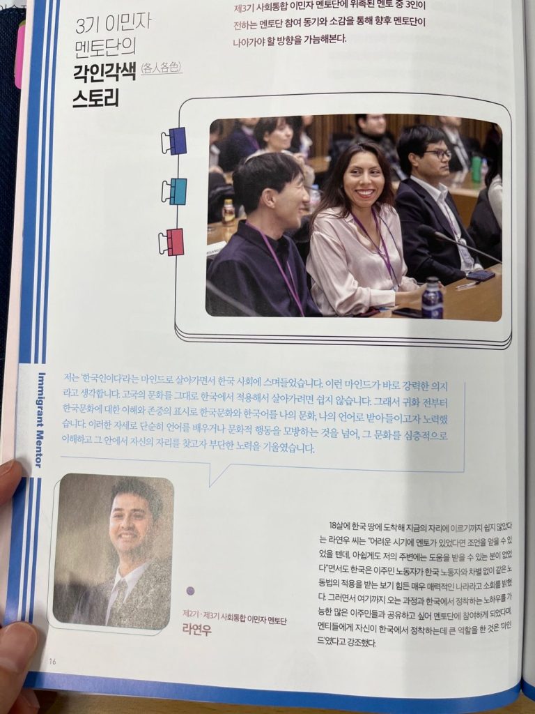 J’ai aussi participé à des concours de politique, défendant la création d’un Conseil des jeunes pour l’environnement, où j’étais la seule chef d’équipe étrangère. Aujourd’hui, je suis mentor pour le même programme de cours intensifs de coréen que j’ai suivi, accompagnant les nouveaux arrivants dans leur intégration. Le COVID, le manque d’information, la recherche d’emploi et la complexité des visas m’ont montré combien il est essentiel d’agir concrètement pour aider.