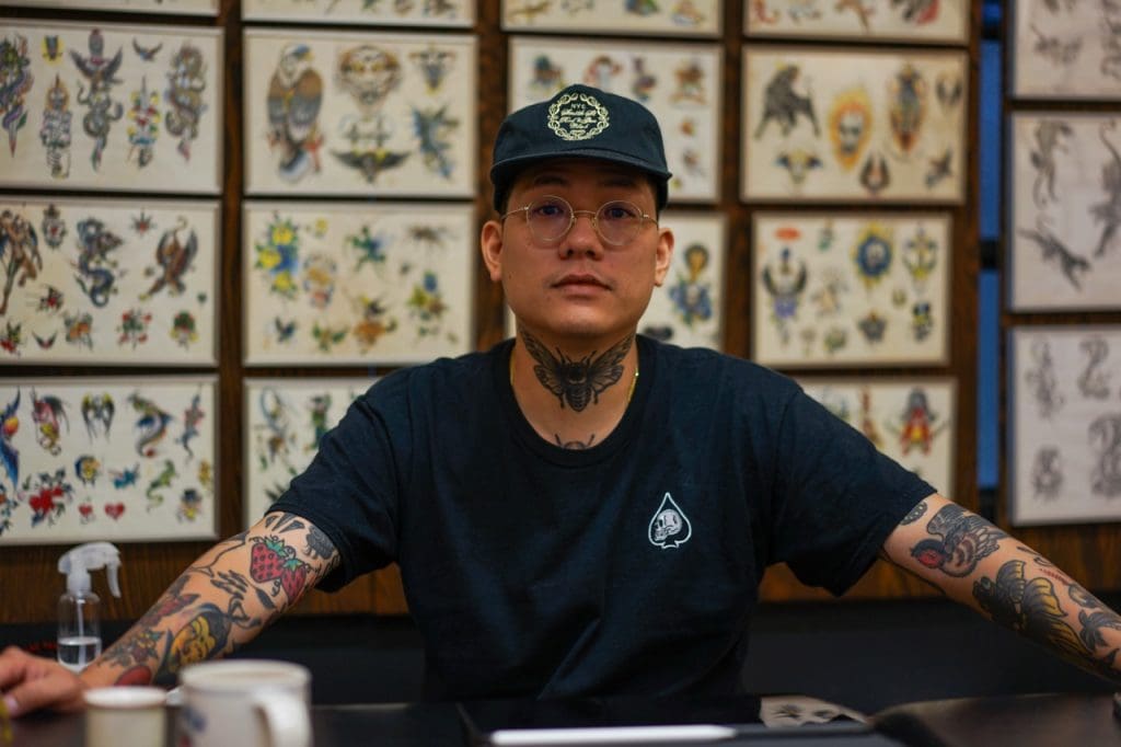 Lorsque vous entrez dans le Hello Tattoo Studio (你好紋身) dans le district de Da’an à Taipei, vous trouvez presque chaque centimètre de mur recouvert de motifs de tatouages flash. Jimmy Shy, qui a fondé ce studio sur mesure en 2011, peut les personnaliser pour vous, mais l’unicité à 100 % n’est pas le but. Nombreux sont ceux qui se sont déjà fait tatouer les mêmes motifs, par Jimmy ou par d’autres.