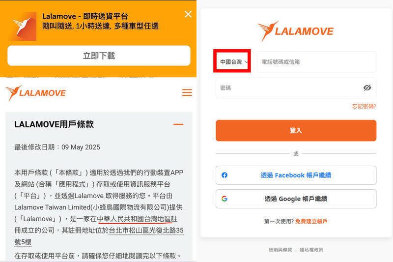 - ⚠️ Lalamove a mentionné Taïwan comme « Chine-Taïwan » sur son site officiel