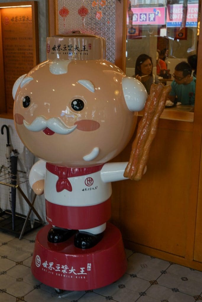 D’autre part, les habitants de la Chine continentale qui étaient venus à Taïwan avec le gouvernement du ROC avaient apporté des aliments à base de blé pour le petit-déjeuner, en particulier des gressins frits appelés youtiao (油條). Au cours des premières décennies de la ROC à Taïwan, les soldats de rang inférieur en service prenaient chaque jour des youtiao avec du lait de soja au petit-déjeuner, une habitude qui a contribué à populariser les youtiao et d’autres aliments à base de blé auprès de la population en général. Les premiers magasins de lait de soja, dont beaucoup sont aujourd’hui ouverts 24 heures sur 24 ou au moins jusque tard dans la nuit, ont commencé par être des restaurants de petit-déjeuner dans les années 1950.