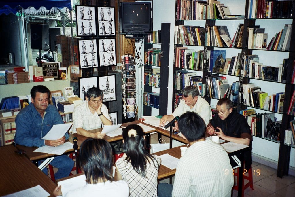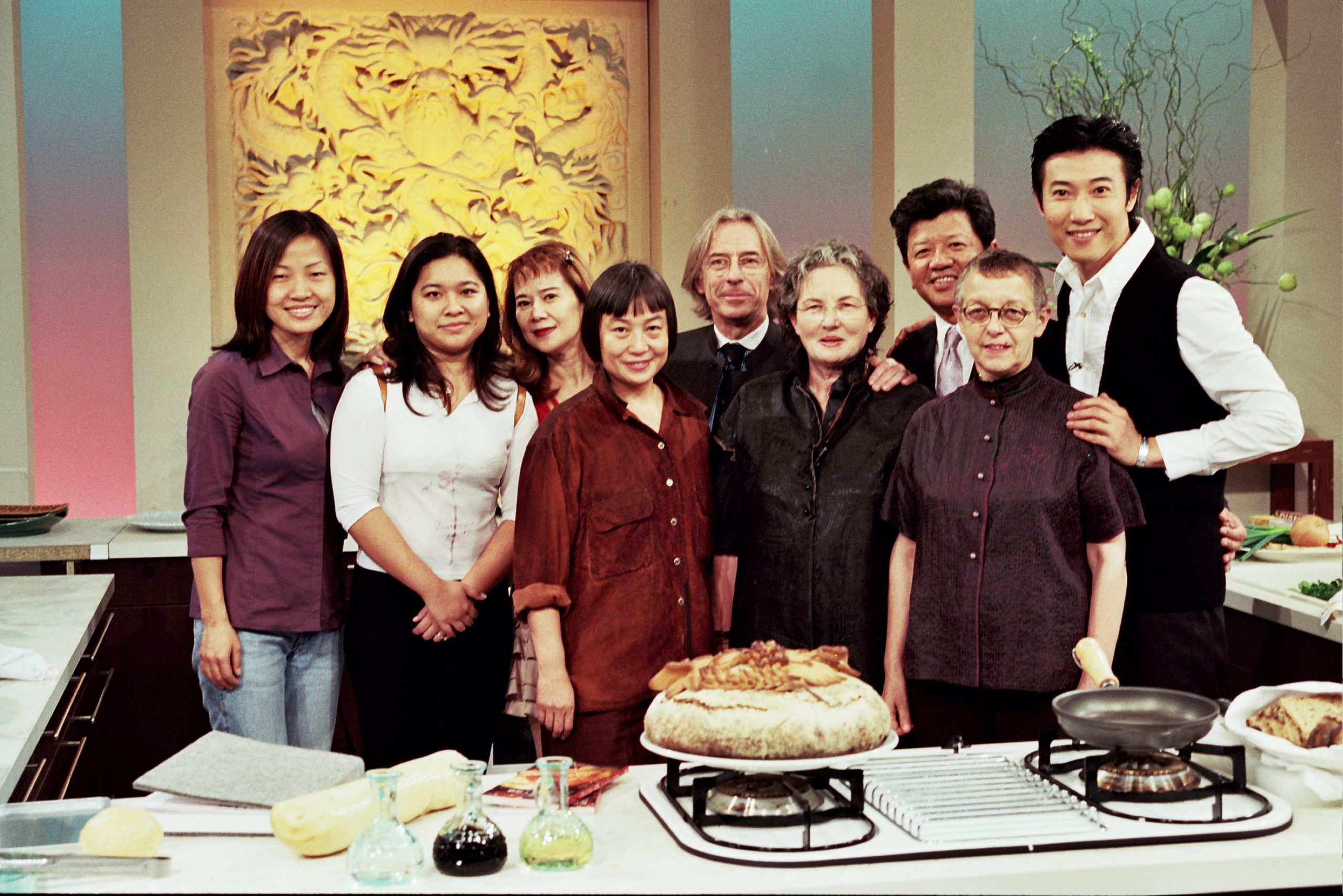 Lionel Poilâne, Danièle Mazet-Delpeuch et Hong Chen (5e, 4e et 1er à d.) invités de “Lire en fête” en 2002 – Copyright : Le Pigeonnier