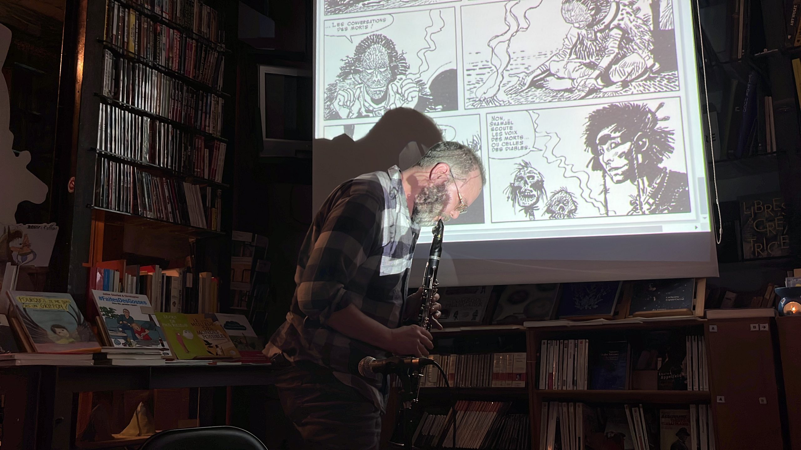 Arnaud Lechat à la Nuit de la lecture en 2022 “Lire des BD à voix haute” – Copyright : Le Pigeonnier