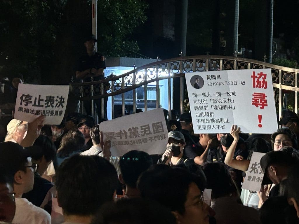 Depuis samedi 18 mai 2024, une manifestation spontanée s’est déroulée devant le Yuan législatif, attirant des centaines de jeunes. Ces manifestations nocturnes de grande envergure sont très rares depuis le Mouvement des Tournesols de 2014. Les protestations visaient les actions du camp pan-Bleu, qui tentaient de faire adopter plusieurs changements législatifs controversés sans débat adéquat.