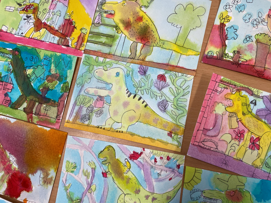 Parfois je donne d’autres ateliers qui n’ont rien à voir avec mes livres. Ce sont des moments où l’on peut se concentrer plus sur des expériences graphiques ou narratives, souvent ça me donne plein d’énergie, ça me libère un peu l’esprit et me donne envie de faire plus de recherches, de découvrir de nouvelles choses, de laisser plus de place à l’expérimentation et à l’imprévu.