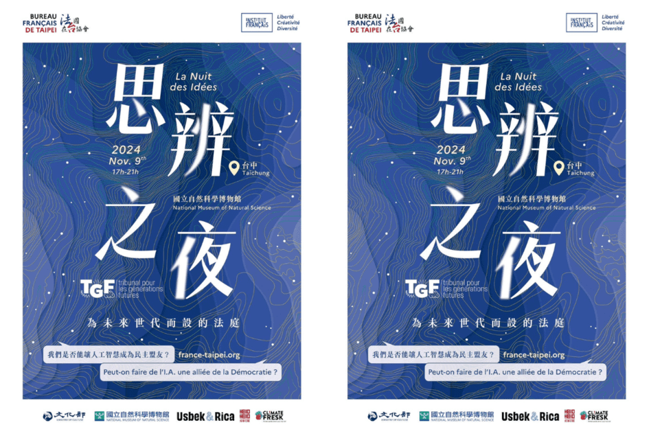 La Nuit des Idées 2024 se tiendra le samedi 9 novembre au Musée National des Sciences Naturelles de Taichung. Cet événement phare du programme de débat d’idées, soutenu par le Bureau Français de Taipei et l’Institut Français à Paris, se concentrera cette année sur le rôle de l’intelligence artificielle (IA) dans le contexte de la citoyenneté et de la démocratie. La soirée promet de riches échanges grâce à une formule innovante : le Tribunal pour les Générations Futures. Ce format interactif mêle conférence et procès pour aborder des enjeux cruciaux.