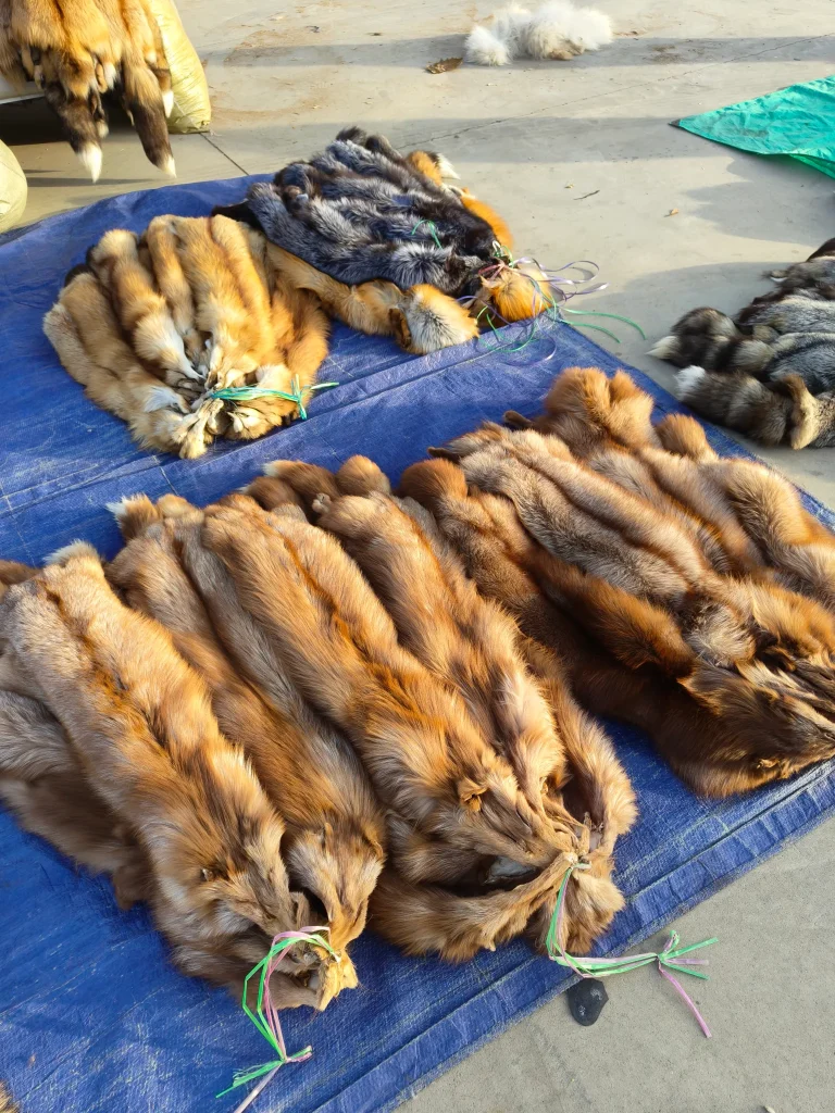 La majorité de la fourrure provient aujourd’hui d’élevages industriels concentrés en Asie, notamment pour les visons, les renards et les chiens viverrins. Ces exploitations fonctionnent sur des modèles intensifs où les animaux sont confinés dans des cages étroites, avec des densités élevées et peu de stimulation. Ce système vise à maximiser le rendement et à standardiser la qualité des peaux, mais il génère des conditions de vie dégradées.