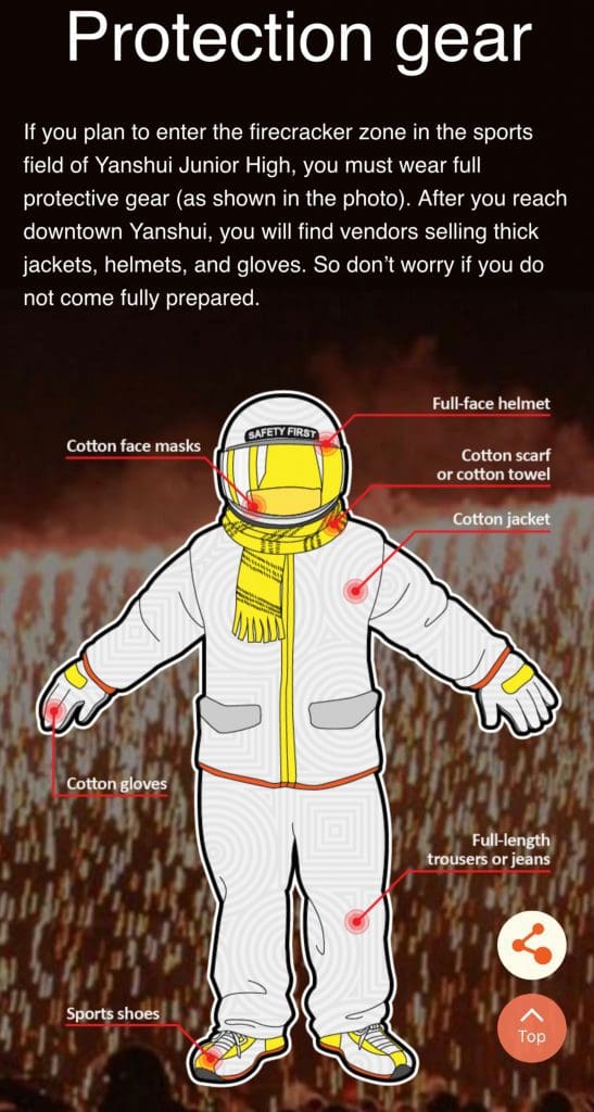 Dernière chose, on peut payer pour être recouvert d’une chaine de pétards. Les explosifs sont un symbole de chance à Yanshui. J’imagine que c’est pour se porter chance (ou pour ceux qui aiment les sensations fortes !).
