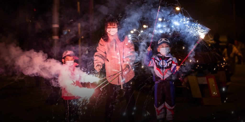 Il est courant de regarder des feux d’artifice de 0h00 à 0h30 et même plus tard dans la nuit. Nombreux sont les enfants et les plus grands à acheter des feux d’artifice et des pétards et à les lancer dans leur jardin, dans la rue ou en bas de leur immeuble. Selon la légende, les feux d’artifice font fuir le monstre Nian, qui émerge à minuit. S’il existe de nombreuses légendes autour du Nouvel An chinois, une des plus célèbres st la suivante.