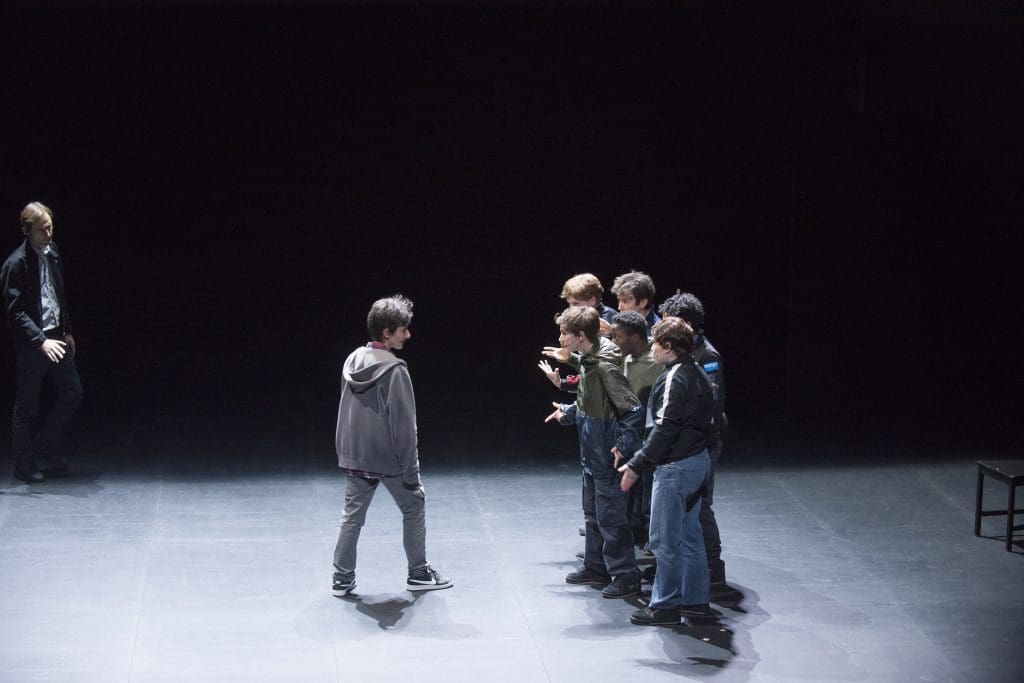 « Contes et légendes » ne se prononce pas sur les avantages ou dangers de l’intelligence artificielle, mais illustre ces bouleversements à travers une série de moments sensibles et amusants. Pommerat traite la fiction d’anticipation comme une réalité documentée, renouvelant ainsi l’étrangeté inquiétante teintée de philosophie qui caractérise son théâtre depuis plus de 25 ans. Dans l’enchantement du théâtre, adolescents en crise et androïdes ouvrent la voie à toutes les simulations et reconfigurations possibles.