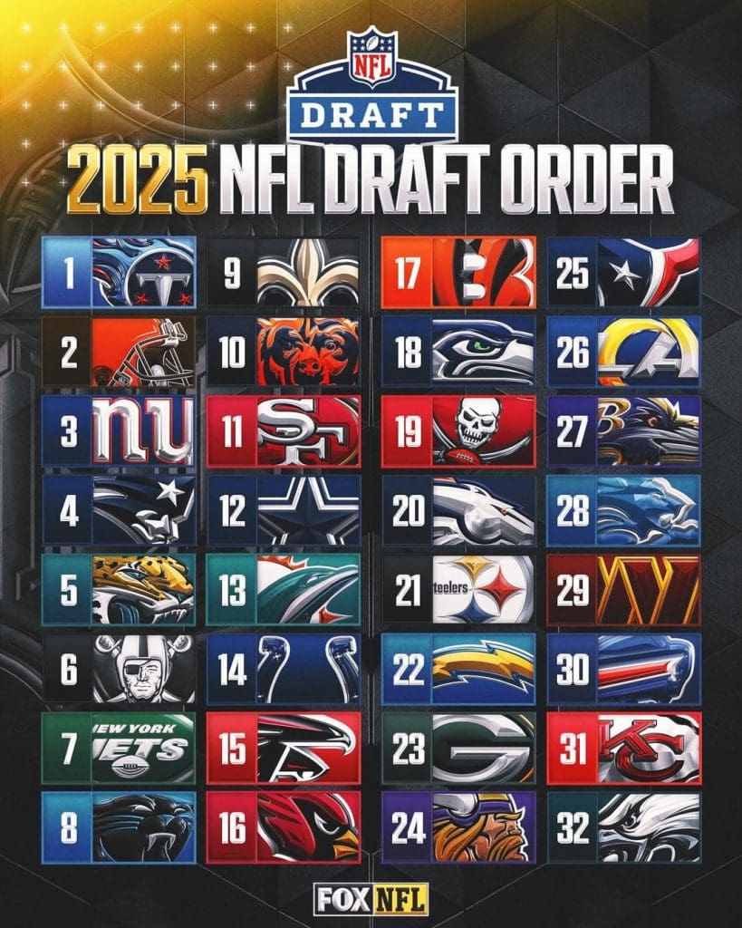 La Draft repose sur un ordre inverse au classement de la saison précédente, afin de favoriser le renouvellement et l’équilibre compétitif. Ainsi, les Tennessee Titans (premiers à choisir en 2025) tenteront de se reconstruire, tandis que les Philadelphia Eagles (Champion en titre), derniers à choisir au 1er tour, n’ont besoin que de renforts ciblés pour rester dans le haut du classement.
