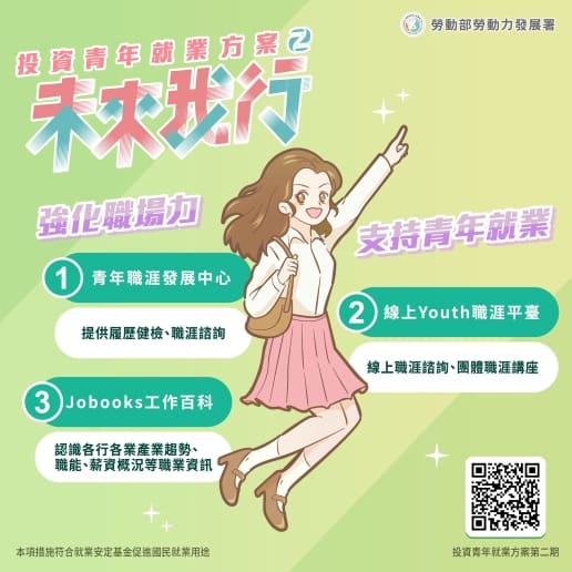 Cinq Youth Career Development Centers (Youth Salon, YS) sont répartis à travers Taïwan. Ils proposent des ateliers de CV, des entretiens simulés, du coaching personnalisé et même des visites d’entreprises. Les jeunes peuvent aussi accéder à des consultations vidéo en ligne via la plateforme TaiwanJobs, participer à des séminaires collectifs ou consulter plus de 500 fiches métiers détaillant tendances, compétences, diplômes requis et salaires.