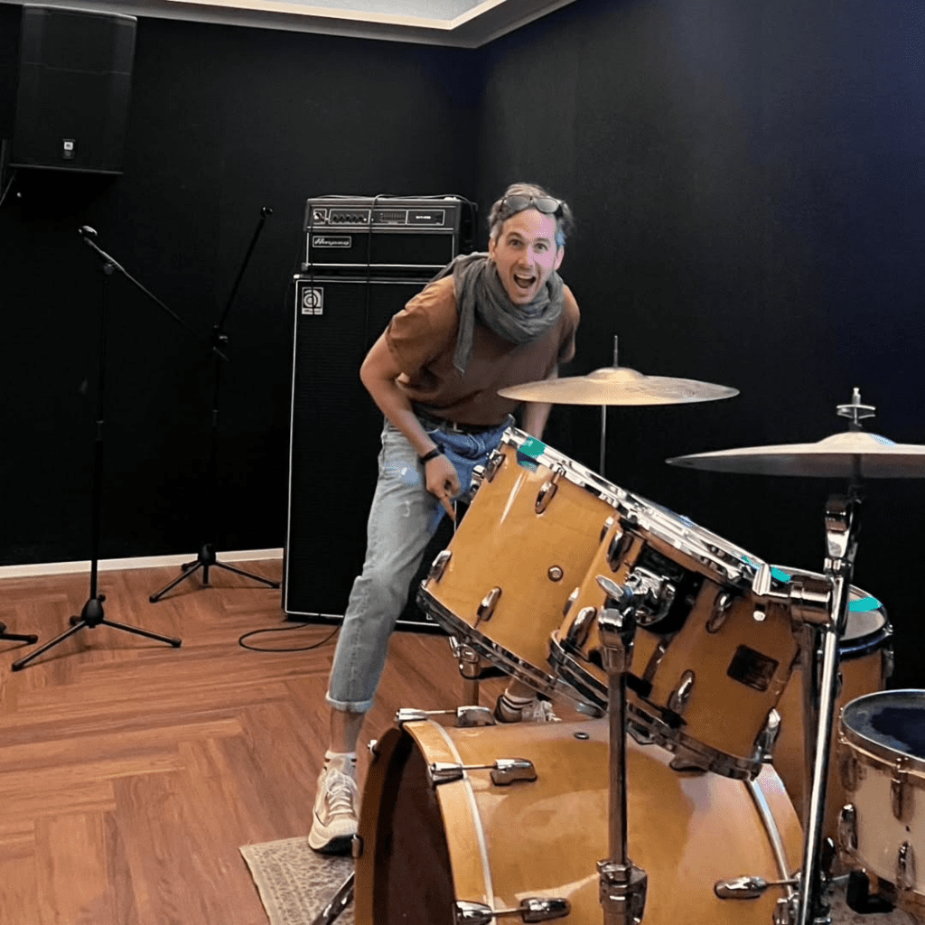 Gauthier jouant de la batterie – Copyright : Page Instagram de Gauthier Herbin