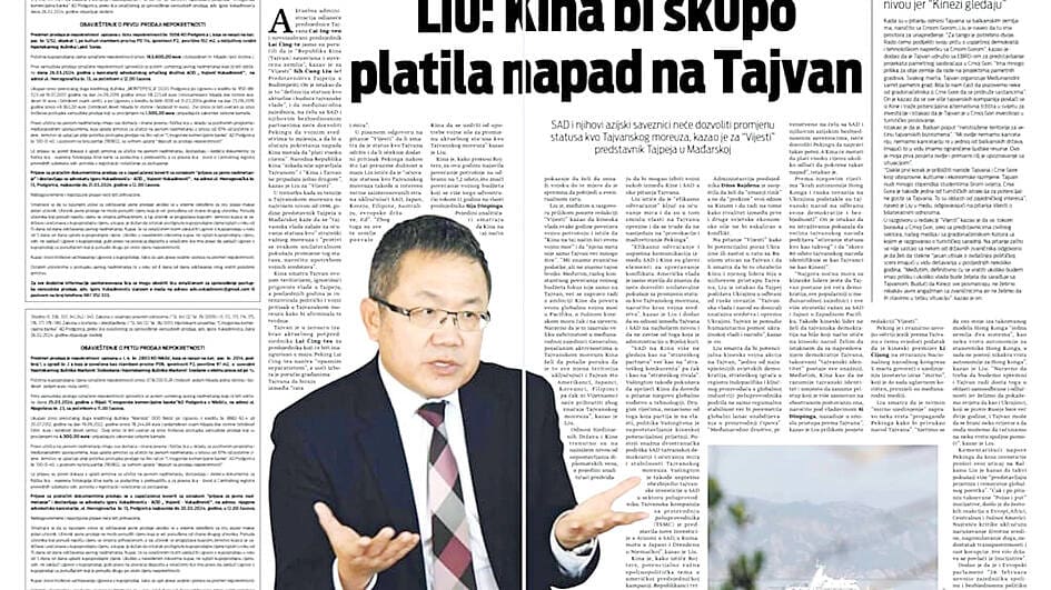 Le quotidien monténégrin « Vijesti » a refusé une demande chinoise de retirer une interview dans laquelle le représentant de Taïwan en Hongrie, Liu Shih-chung, déclare que Taïwan est un « pays indépendant et souverain ». Face à l’objection de l’ambassade chinoise au Monténégro, le journal a maintenu sa position, affirmant qu’il « ne peut pas retirer l’article ».