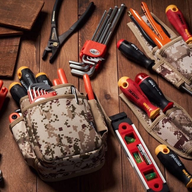 Ce sac robuste en polyester 600D, imprimé camo, permet de garder tous ces outils à portée de main. Pratique, stylé et résistant, un classique des pros japonais.