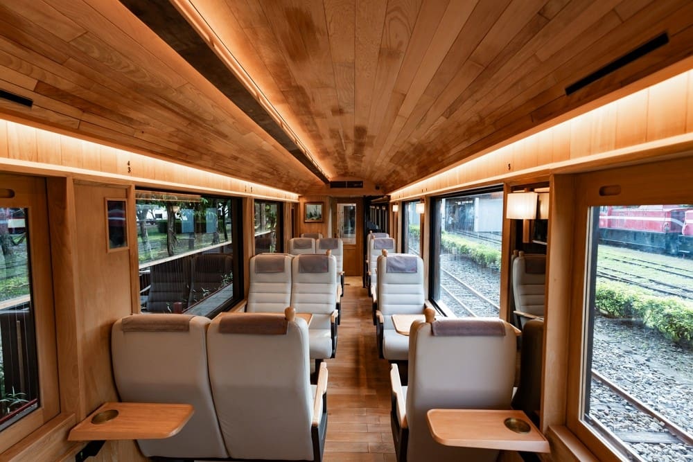 Le Train d'Alishan en Cyprès, alliant élégance et durabilité dans son design d'éclairage, représente un symbole de l'innovation taïwanaise.