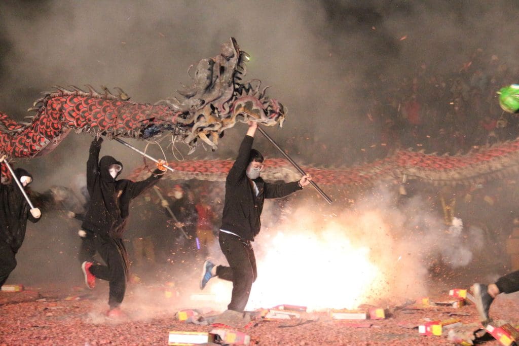 Venez découvrir le spectaculaire "Dragon Bombing" à Miaoli, une tradition Hakka qui mêle danse de dragon et feux d'artifice.