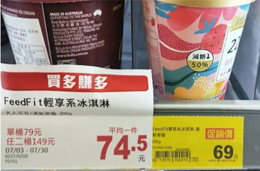 Certains consommateurs ont remarqué que PX Mart affichait une étiquette “achetez plus, économisez plus” sur certains produits. Par exemple, une boisson au yaourt est normalement vendue 55 NT$ l’unité, mais la promotion indiquait : “2 pour 112 NT$ (56 NT$ l’unité)”.