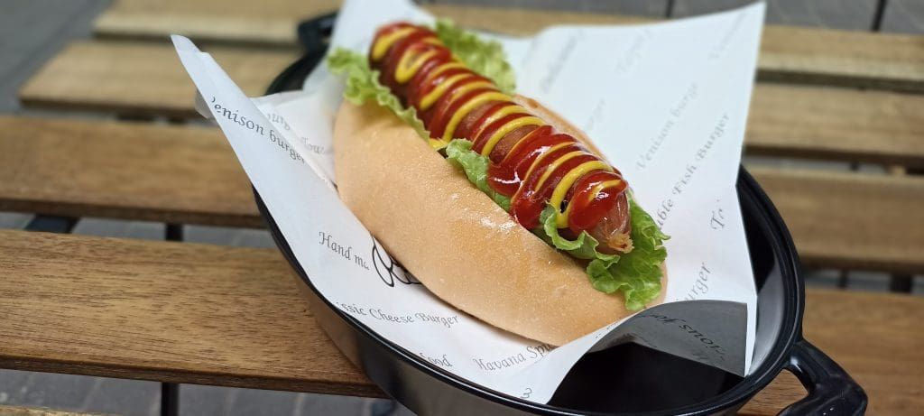 Le hotdog, bien que simple, était bien réalisé. Avec une saucisse plus grande que celle des hot dogs américains et un pain fait maison, il offrait une satisfaction classique, bien que sans surprise.