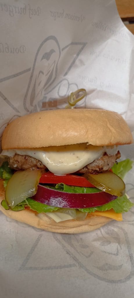 Cependant il n’y a pas de choix végétarien ou vegan. Certains pourraient trouver celà dommage. Mais après tout qui va dans un restaurant de burger pour manger vegan ? Le propriétaire des lieux propose ce qu’il aime manger et tant pis si ça déplaît.