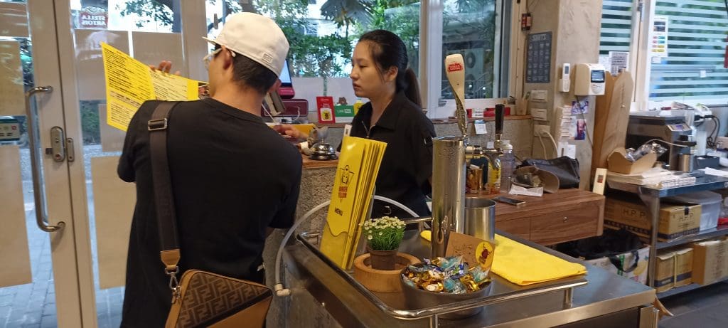 Dès votre entrée dans Burger Yellow, vous êtes accueilli par un personnel souriant et serviable, toujours prêt à répondre à vos demandes spéciales. Bien que tout le monde ne parle pas anglais, ils utilisent des applications de traduction pour assurer une bonne communication. La carte est également en anglais, facilitant ainsi le processus de commande. De plus, si vous êtes un visiteur régulier, vous serez touché de constater que le personnel se souvient de vous et de vos préférences et/ou vos allergies.