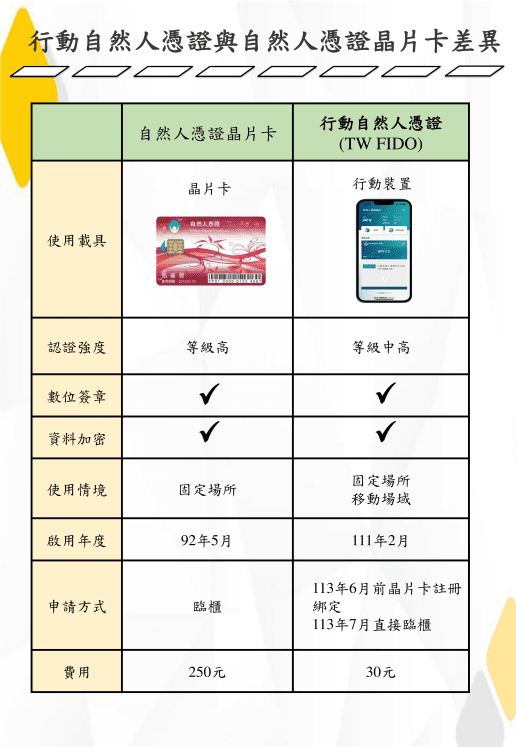 Dès décembre 2024, tous les bureaux d’enregistrement à travers Taïwan offrent la possibilité de demander le certificat numérique mobile sur place. Les citoyens doivent simplement se présenter avec leur smartphone et régler des frais minimes de 30 NTD (0,87 €).