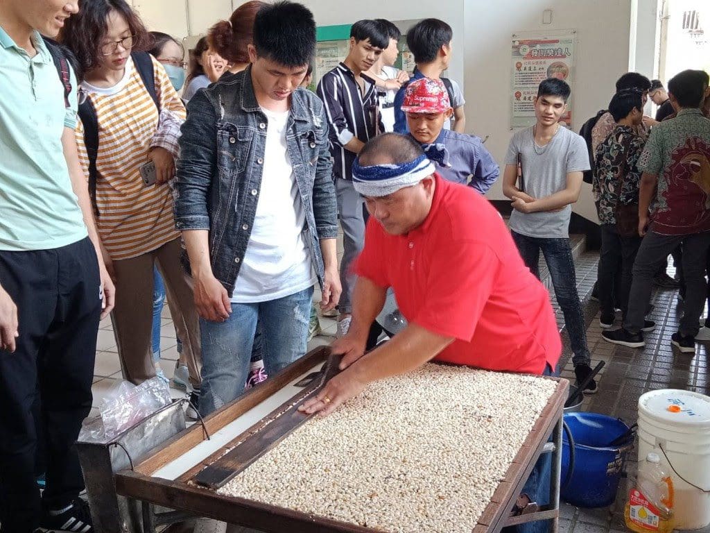 Le bruit de la fabrication est très fort, alors avant de le faire, il rappelle aux gens autour de lui (en criant) : Ça vient ! 要爆了 ! (yào bào le !). Habituellement, ils le disent en Hokkien taïwanais, ce qui signifie : Ça va exploser !