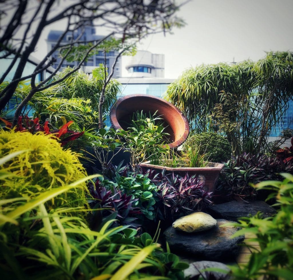En 5 ans, j’ai créé ou aidé à la conception d’une cinquantaine de jardins à Taipei et New Taipei City. Comme chaque espace est différent et que chacun a une routine bien à soi, mon travail de paysagiste consiste avant tout à bien choisir les plantes et utiliser les bonnes techniques pour réaliser le jardin souhaité. Je commence donc souvent par une consultation de deux heures pour discuter avec les clients et visiter l’endroit où je vais créer ce nouveau jardin. Le service de consultation est aussi adapté pour ceux qui ont déjà des plantes mais qui rencontrent des difficultés. Cela me permet de diagnostiquer le problème et de les orienter. Vient ensuite le service de design et de mise en œuvre. Si les clients le souhaitent, ils peuvent venir avec moi acheter les plantes et les pots ou m’aider à rempoter s’ils veulent apprendre à jardiner. Enfin, j’offre aussi un service d’entretien pour les entreprises et les particuliers. Cela permet de garder un jardin en parfait état et très esthétique. C’est cas par exemple d’un salon de thé japonais qui a commandé un jardin zen. En général, un entretien une fois par mois suffit très largement.