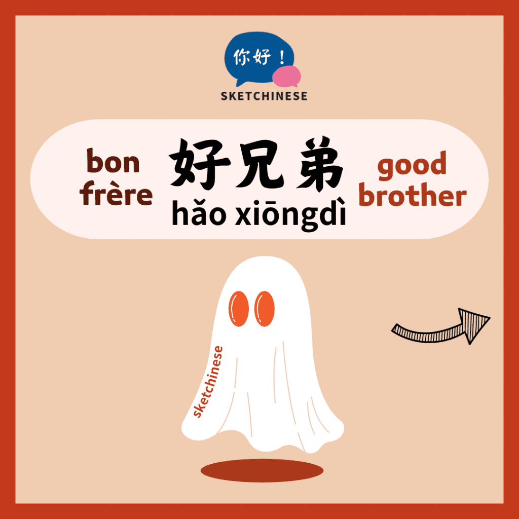 Le sens littéral de « 好兄弟 » est « bons frères ». Comme vous le remarquez, ce mot renvoie à des hommes, surtout ceux qui n’ont pas de famille dans notre monde. « 阿飄 » signifie « les choses qui volent ». « 髒東西 » veut dire « les choses sales ». Les mots « 阿飄 » et « 髒東西 » sont plus généraux que « 好兄弟 ». On peut les employer pour désigner tous types de fantômes.