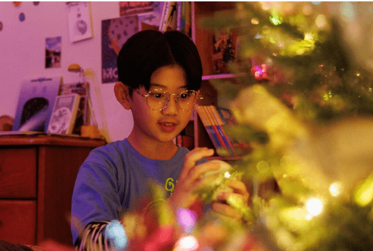 Le film reflète parfaitement cet esprit : décorations lumineuses, petits cadeaux et chaleur familiale malgré les difficultés.