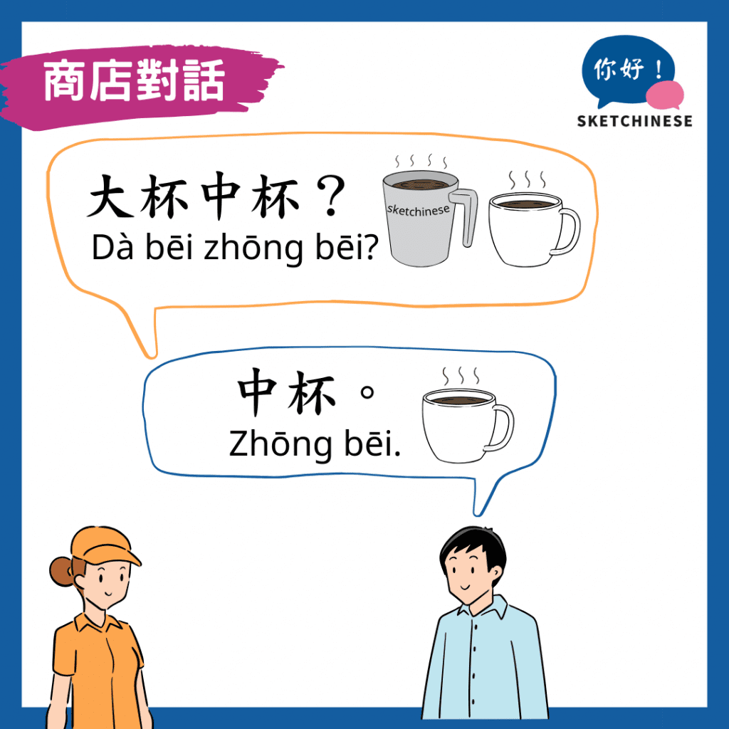 en mandarin : 一杯珍珠奶茶,你要大杯中杯?
