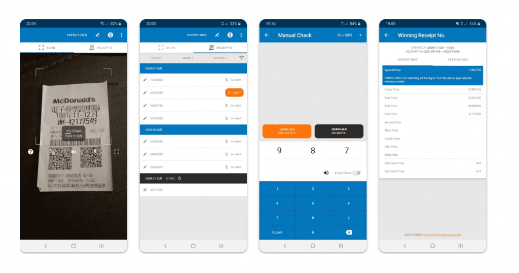 Il existe aussi l’application Taiwan Receipt Scanner, qui inclut une fonction de budget dans le cas où vous voudriez suivre vos dépenses pendant que vous scannez pour les numéros gagnants ! En sommes cette application vous dit combien vous avez gagné avec vos tickets et combien vous avez dépensé en tout ! Bref vous verrez vite si cette opération est rentable !